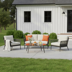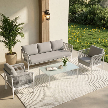 Outdoor Rope 4 Piece Sofa Set (Beige & Grey)
