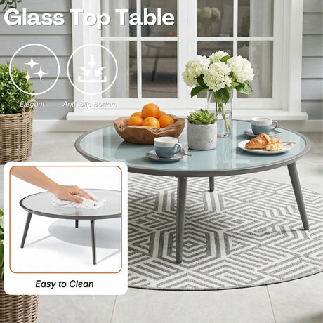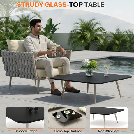 Outdoor Rope 4-Seater Sofa Set with Glass Top T...