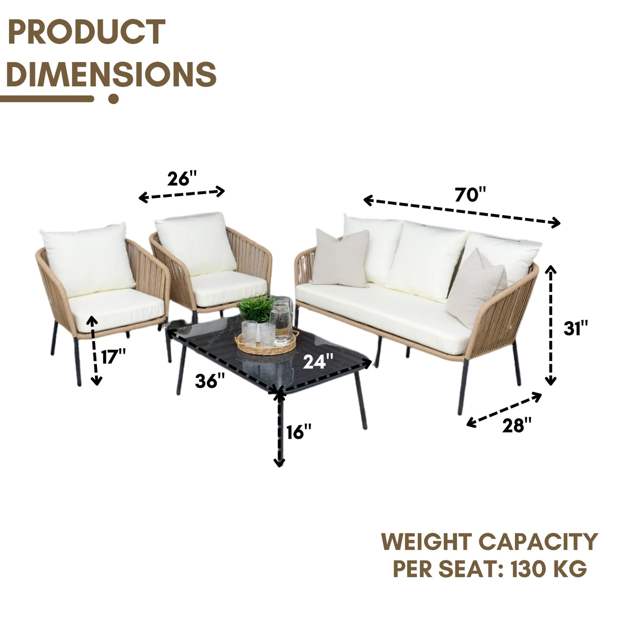 - 2 Single Seater Sofa Dimensions: 26"L×28"W×31"H