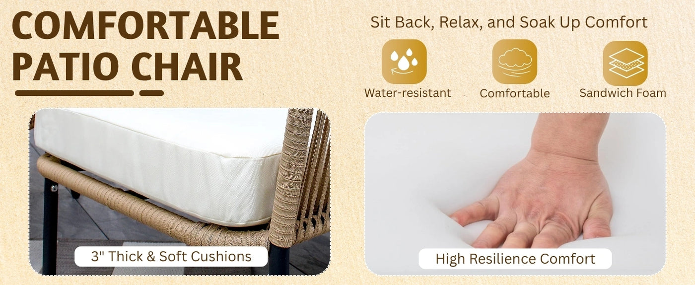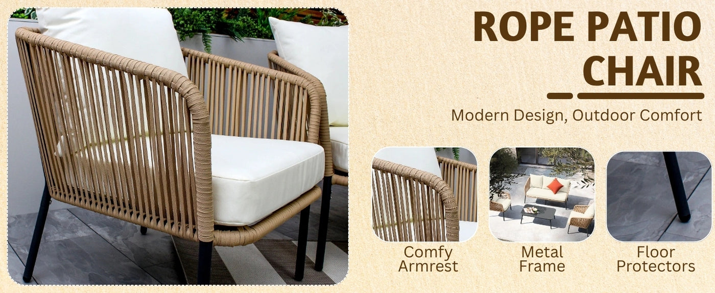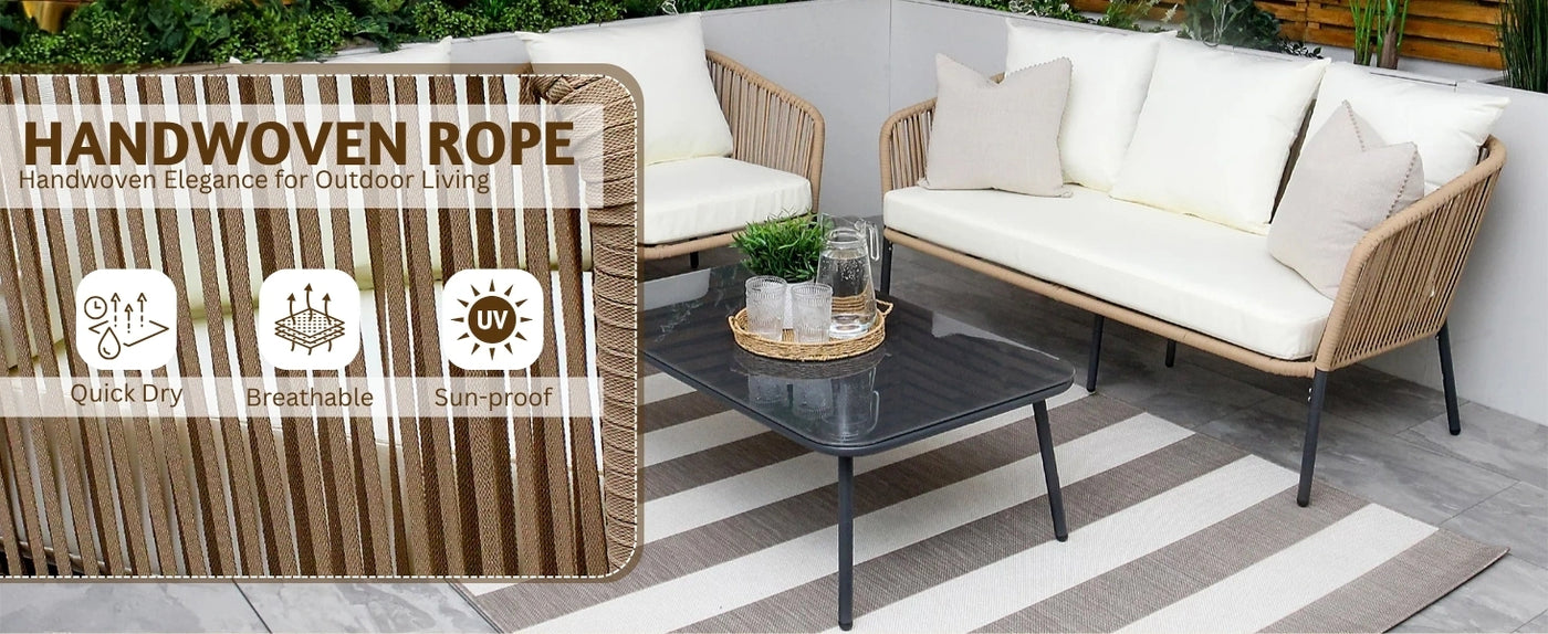 1. Rope Furniture - Clean with mild soap and water, avoid excess moisture, and cover when not in use to prevent wear from sun and rain.