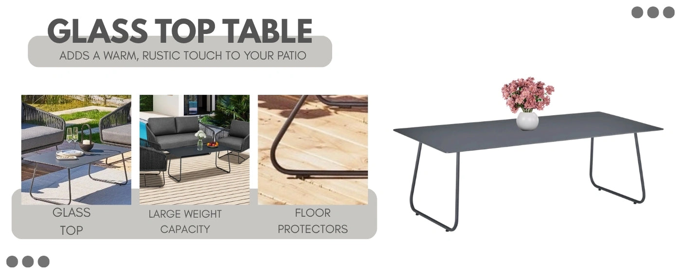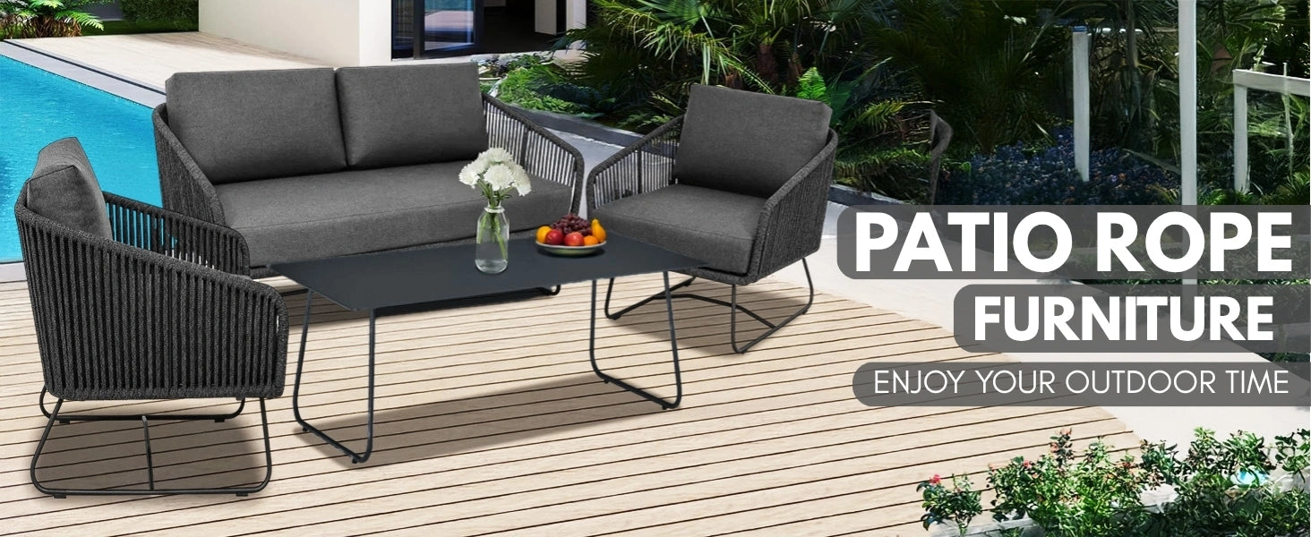 1. Rope Furniture - Clean with mild soap and water, avoid excess moisture, and cover when not in use to prevent wear from sun and rain.