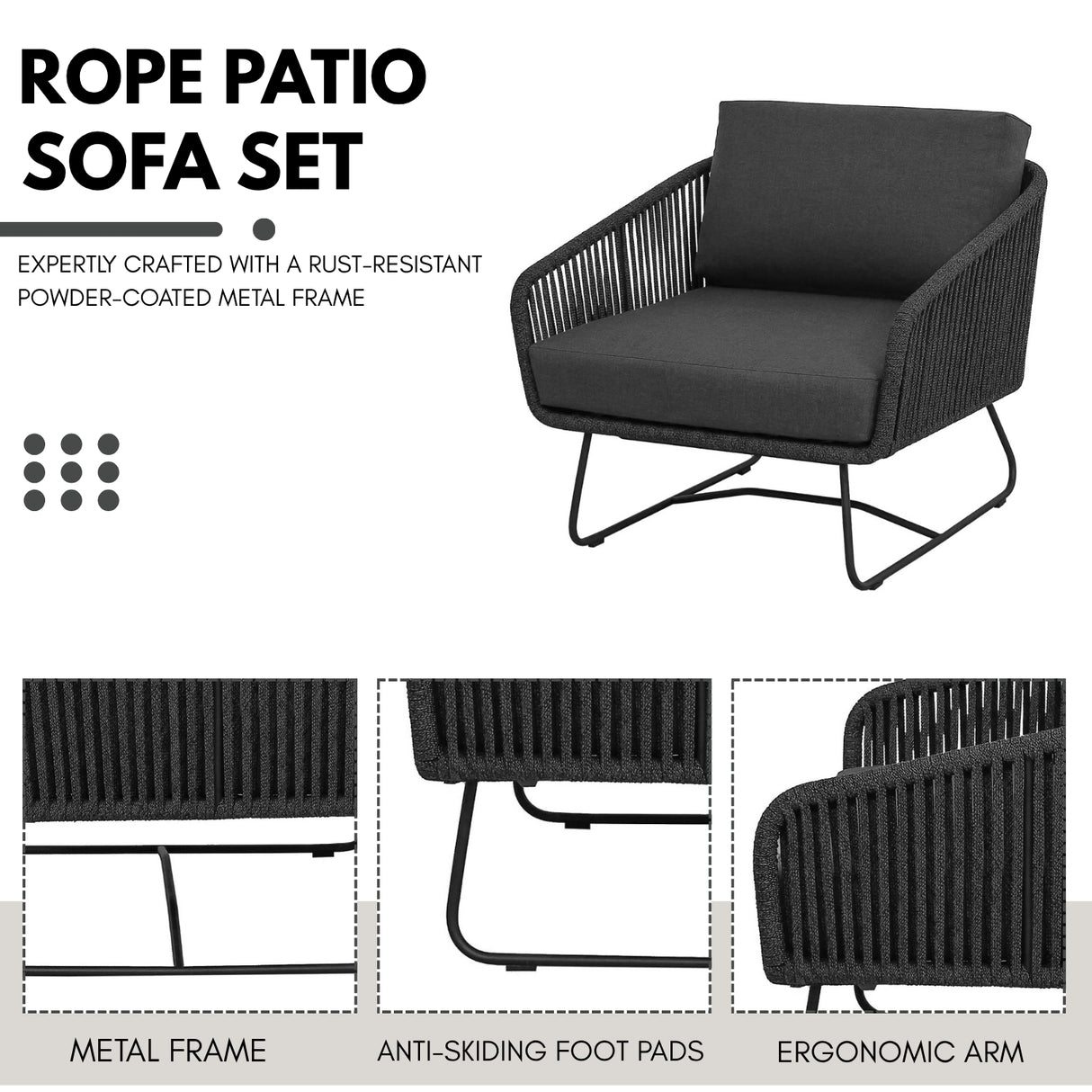 4 Piece Outdoor All-Weather Rope Sofa Set
