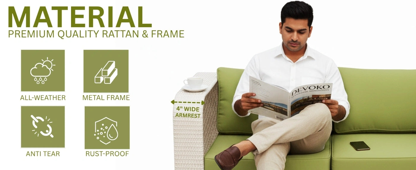 - All-Weather HDPE Wicker Construction : Crafted with handwoven, high-density polyethylene (HDPE) wicker that is UV-resistant and fade-proof, ensuring long-lasting performance in sun, rain, or humidity.