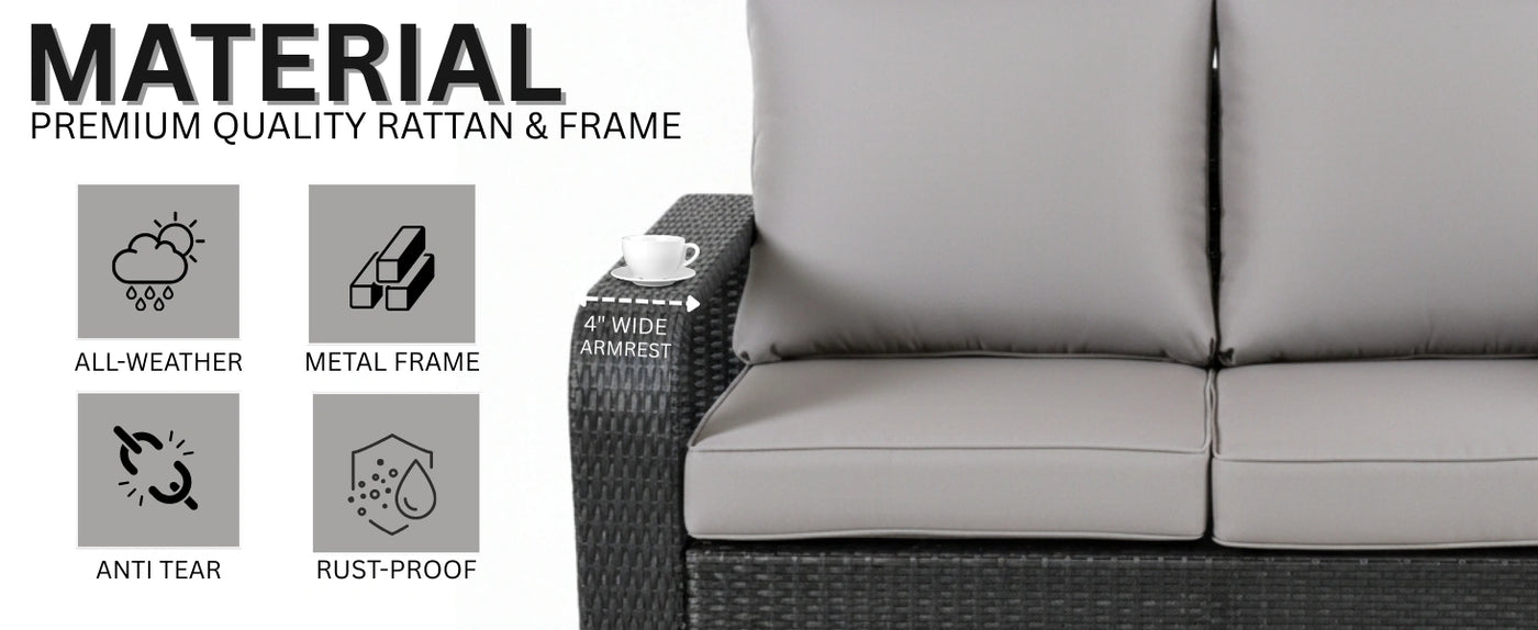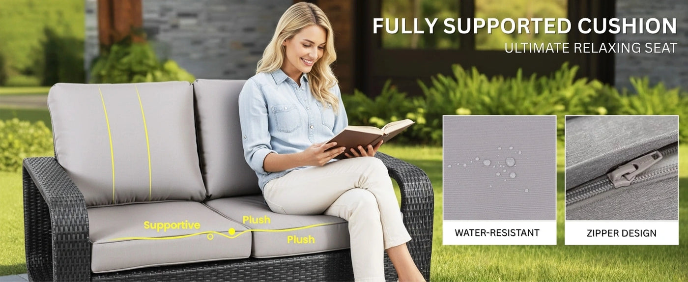 - Plush Water-Resistant Cushions : Includes soft, high-resilience seat and back cushions with water-resistant and removable covers for easy cleaning and added comfort, perfect for relaxing outdoors.