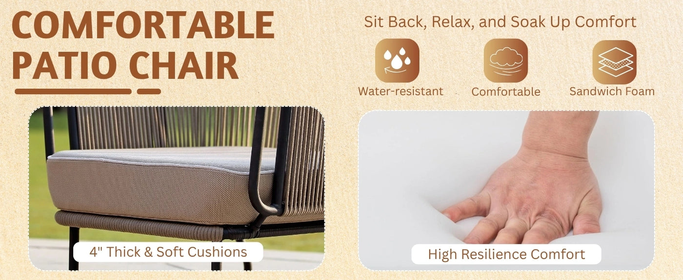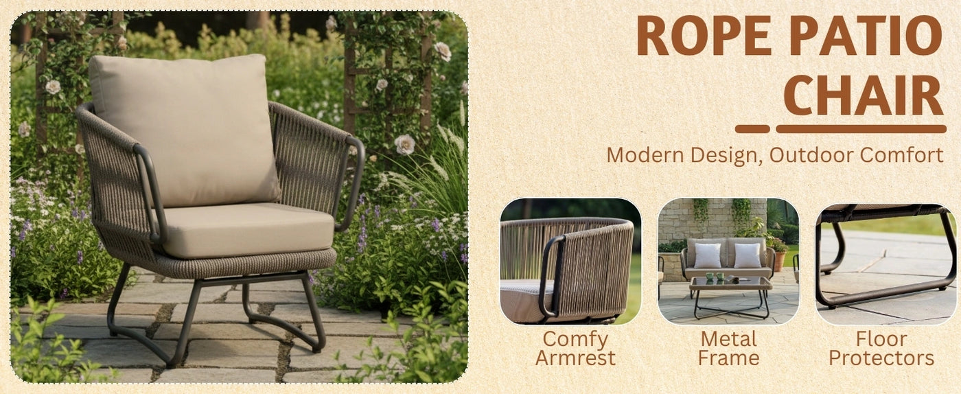 - Modern Coastal Design : Elegant rope weave and soft-toned cushions create a stylish, contemporary look for any outdoor setting.