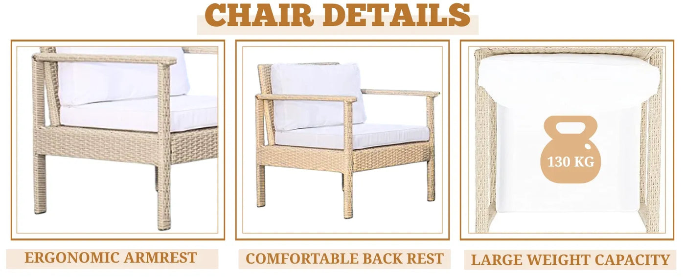 - Modern Yet Natural Aesthetic : The combination of earthy rattan texture and neutral cushion tones complements outdoor surroundings, creating a cozy and stylish atmosphere for gardens, balconies, and patios.