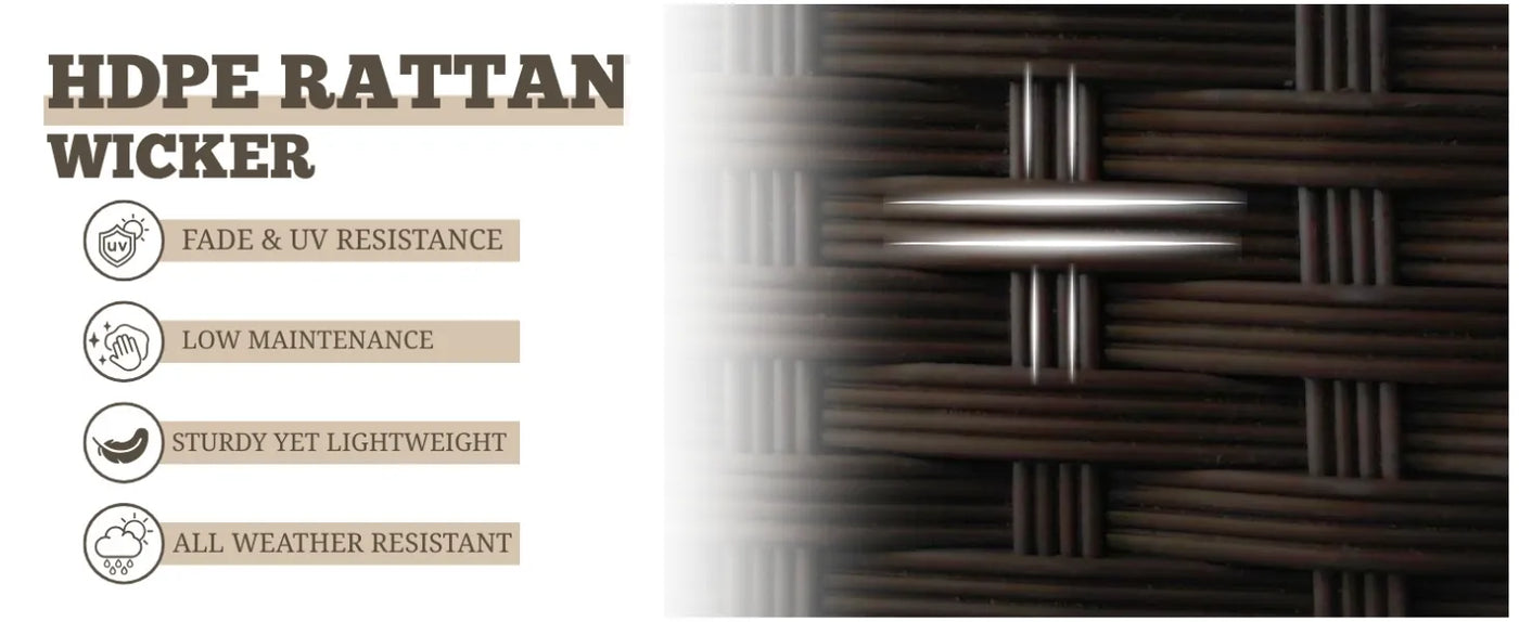 - Durable All-Weather Construction : Crafted with a powder-coated metal frame and weather-resistant wicker to withstand sun, rain, and humidity.