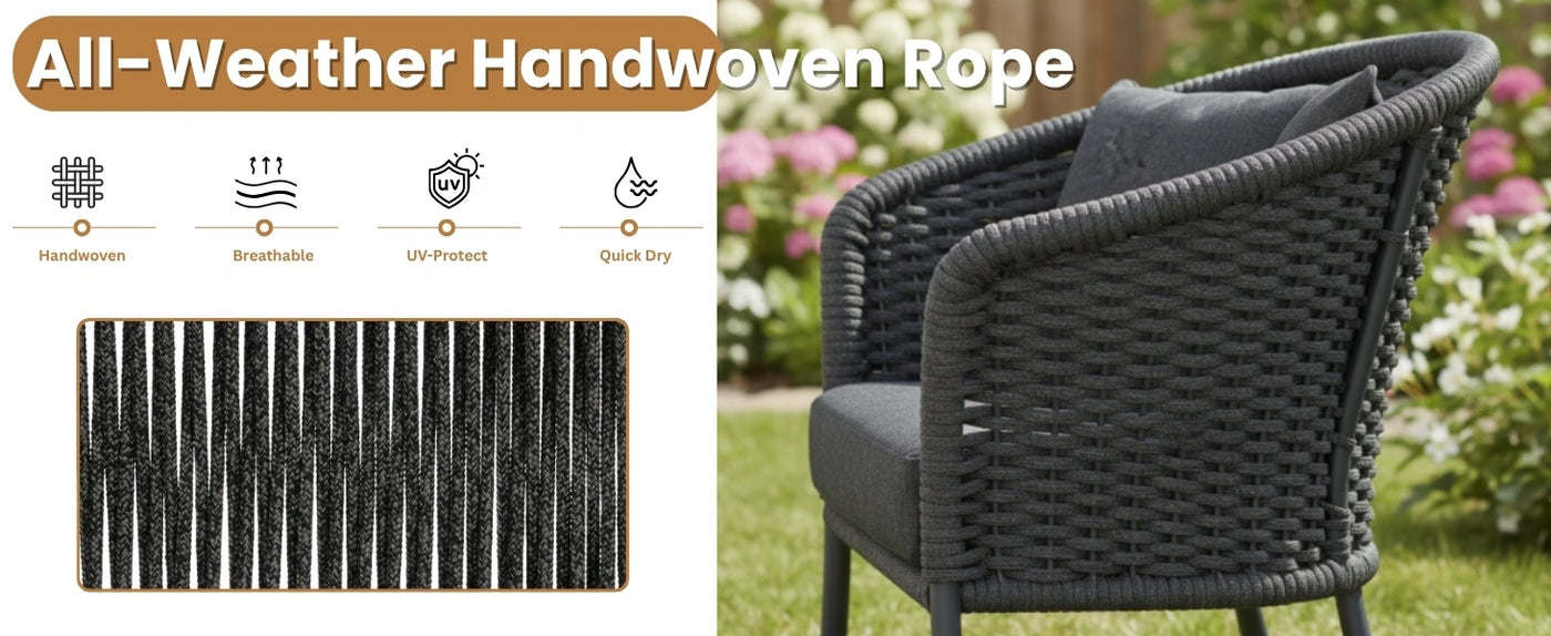 1. Rope Furniture - Clean with mild soap and water, avoid excess moisture, and cover when not in use to prevent wear from sun and rain.