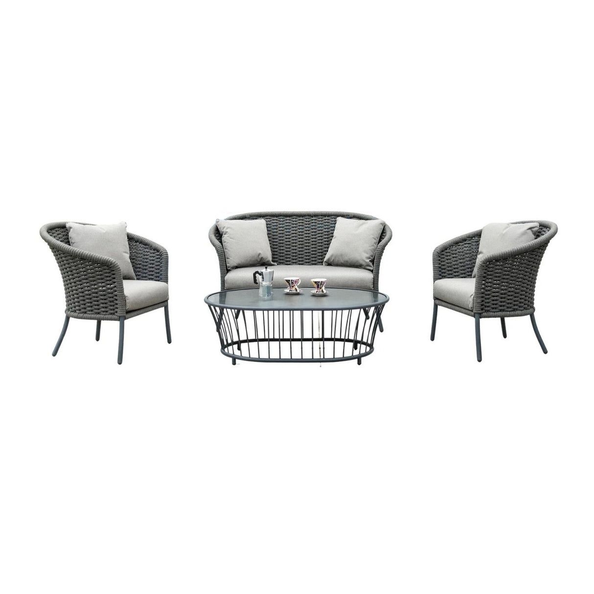 Outdoor Grey Rope 4 Piece Patio Sofa Set with Light Grey Cushions