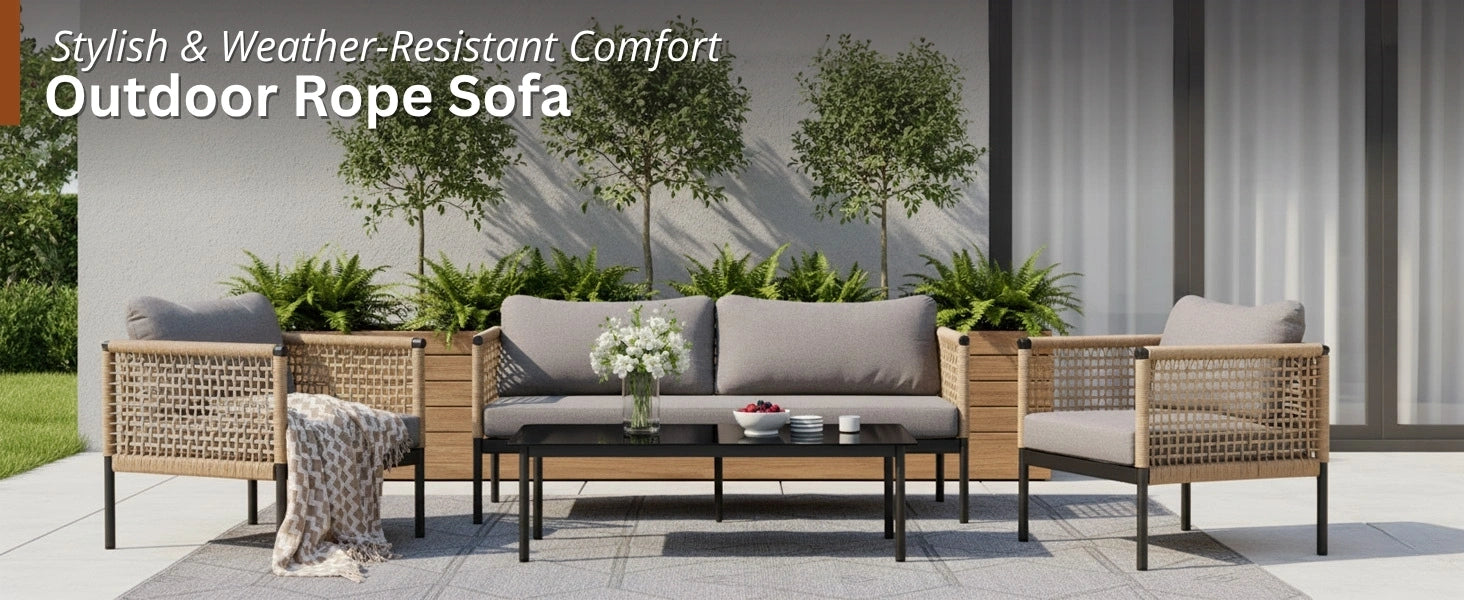 1. Rope Furniture - Clean with mild soap and water, avoid excess moisture, and cover when not in use to prevent wear from sun and rain.