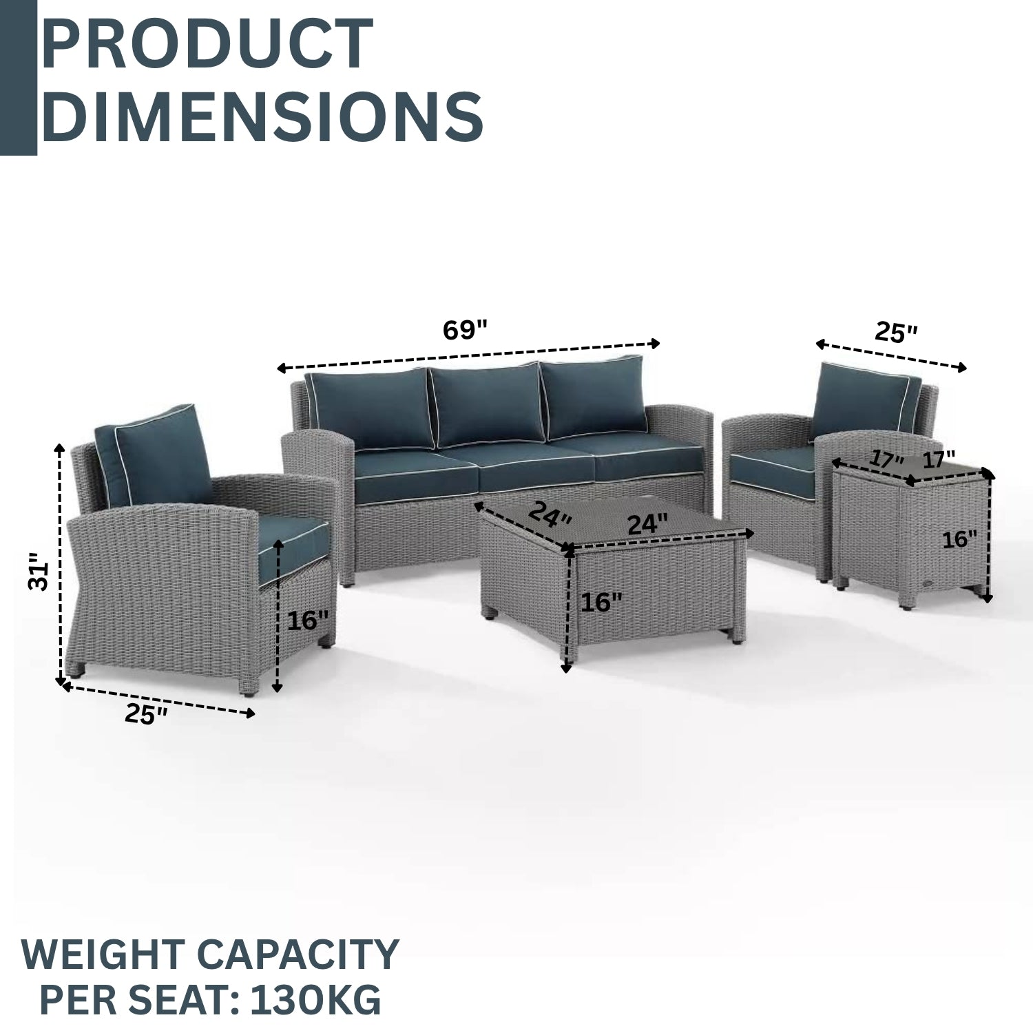 - 2 Single Seater Sofa Dimensions: 25"L×25"W×31"H