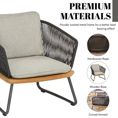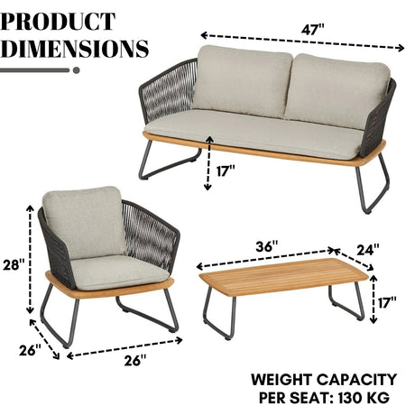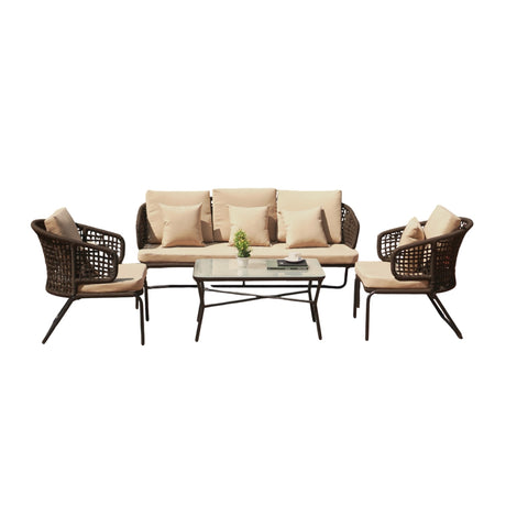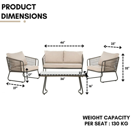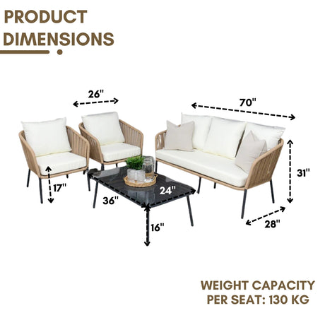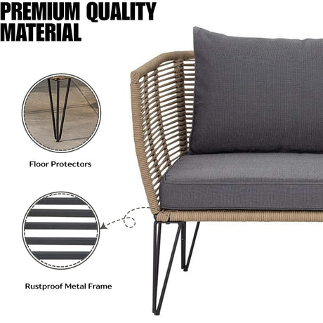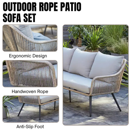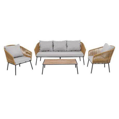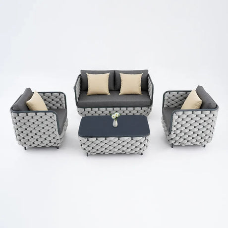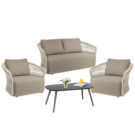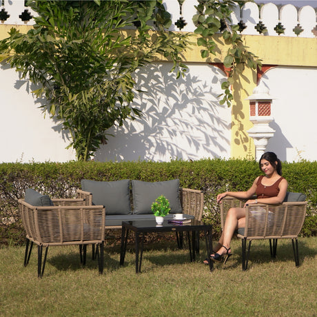 Outdoor Rope 4 Piece Sofa Set (Beige & Grey)