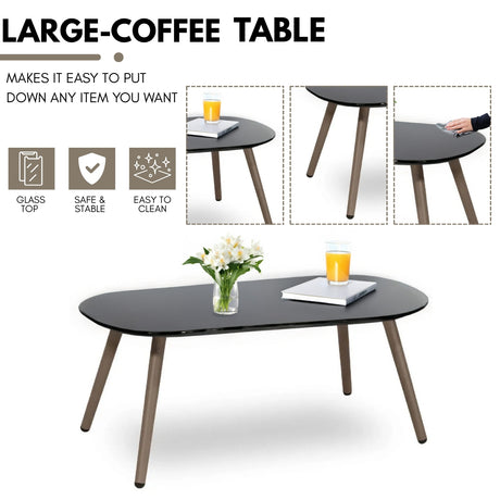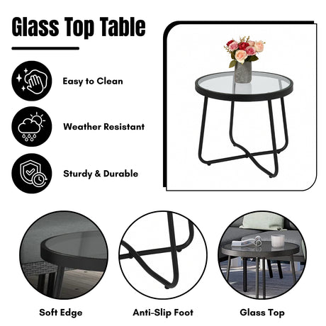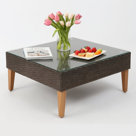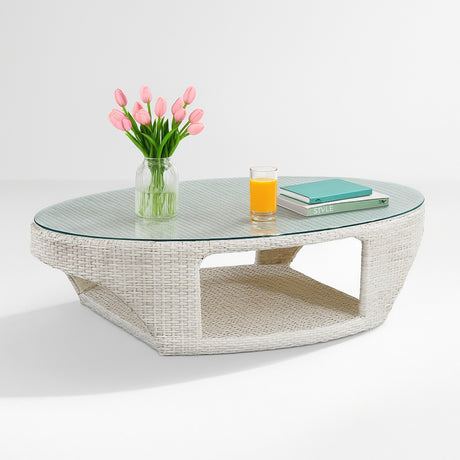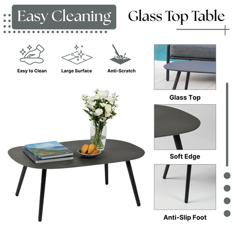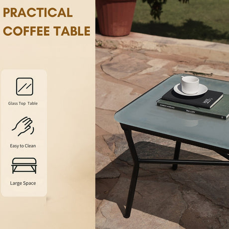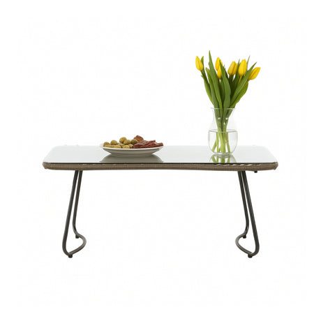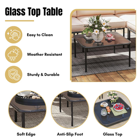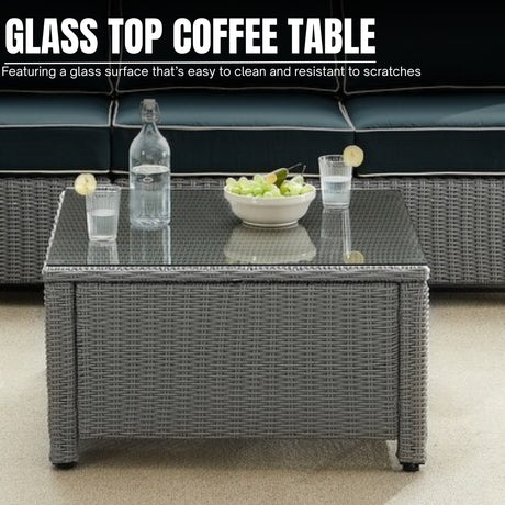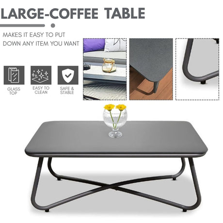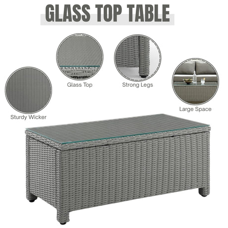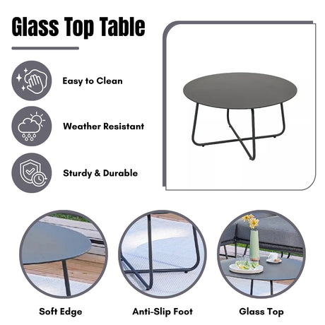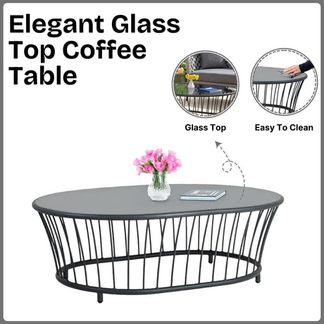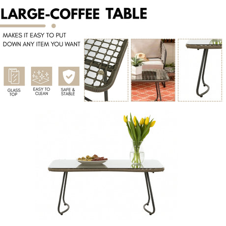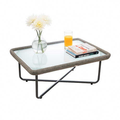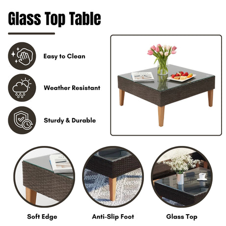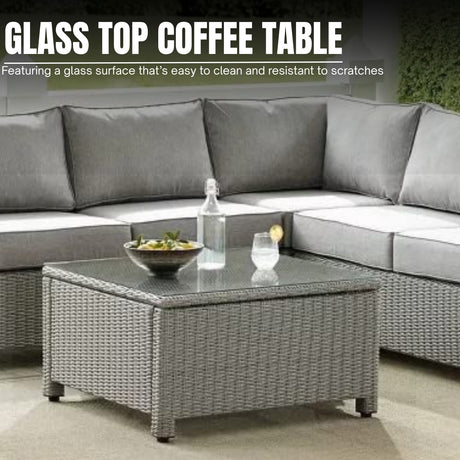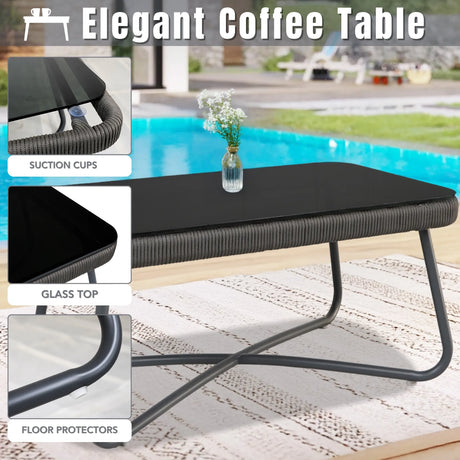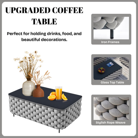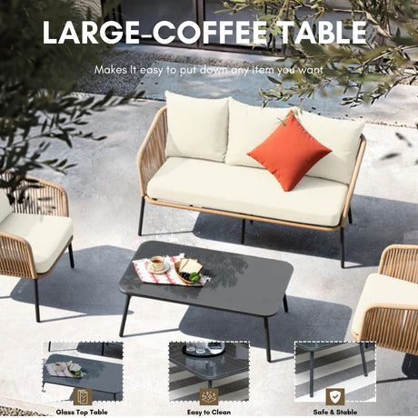 4 Piece Outdoor Rope Sofa Set with Glass Top Co...