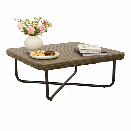 L-Shaped Rope Woven Outdoor Sofa Set (Beige &am...
