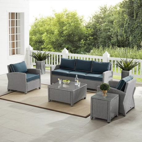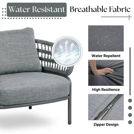Outdoor Grey Rope 4 Piece Patio Sofa Set with D...