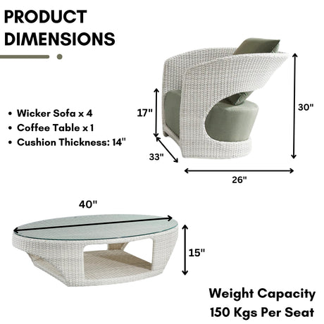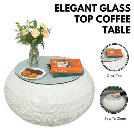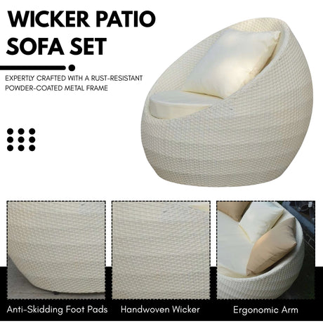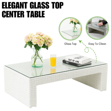 Outdoor White Rattan Wicker Sofa Chairs With Gl...