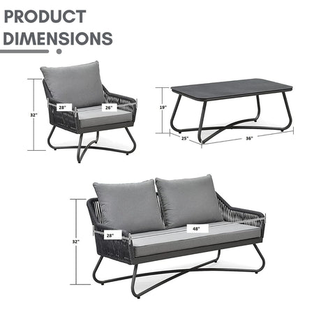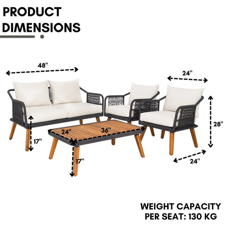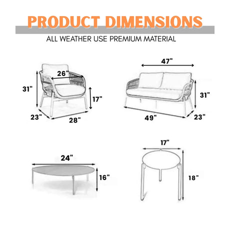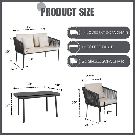 4 Piece Outdoor All-Weather Rope Sofa Set