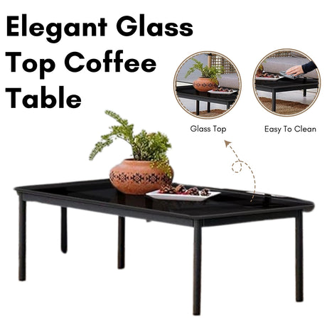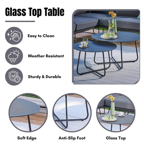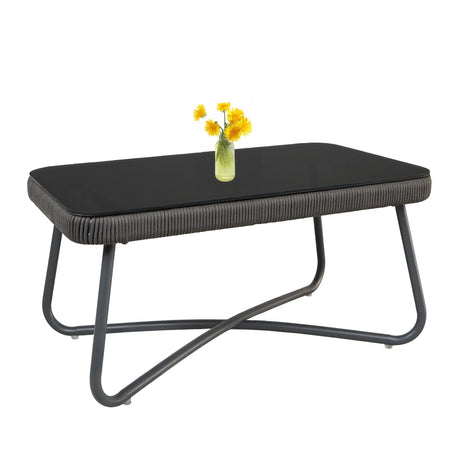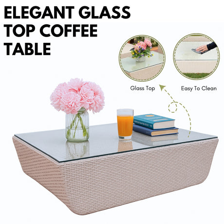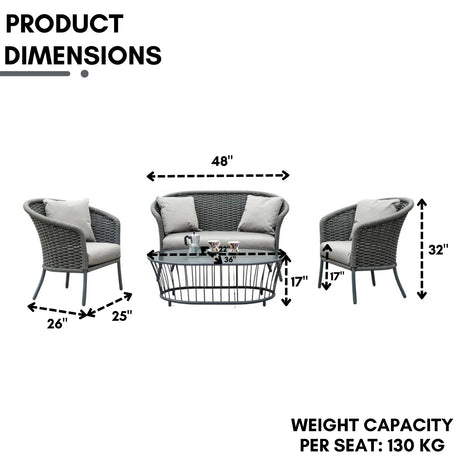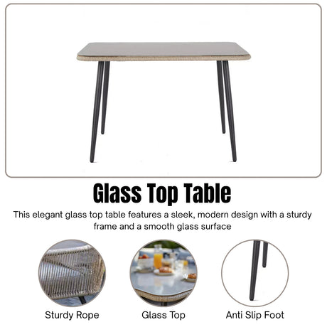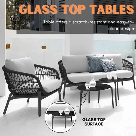 Outdoor Rope 4 Seater Sofa Set With Glass Top T...
