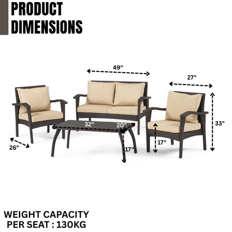 4-Piece Outdoor Rattan Wicker Patio Sofa Set