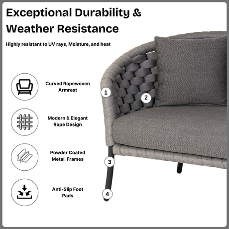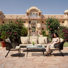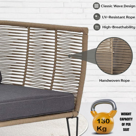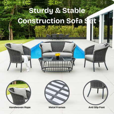 Outdoor 4 Seater Rope Conversation Sofa Set