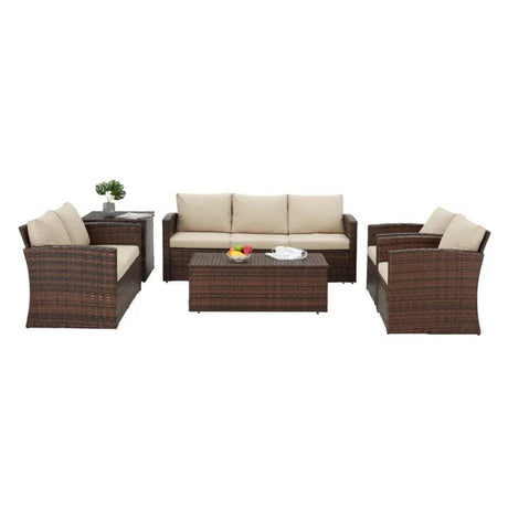 Outdoor 6-Piece Rope Woven Conversation Sofa Se...
