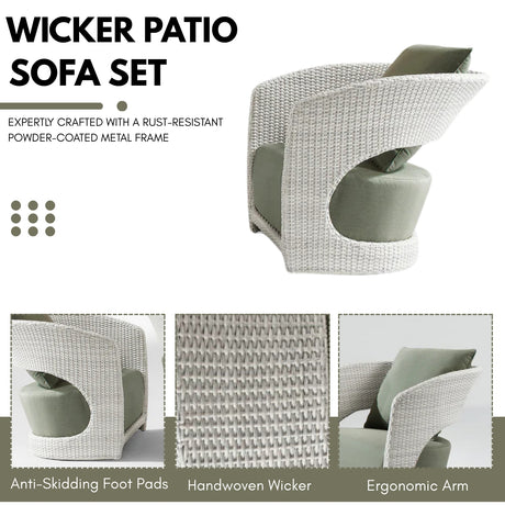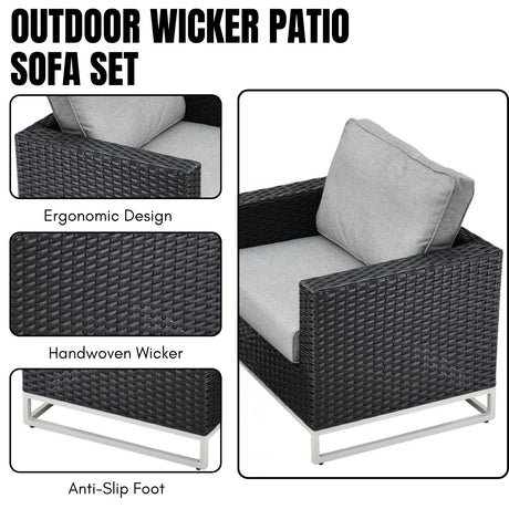 3-Pieces Outdoor Wicker L-Shape Sofa Set