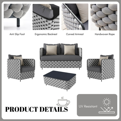 Outdoor 4-Piece Rope Woven Conversation Sofa Se...