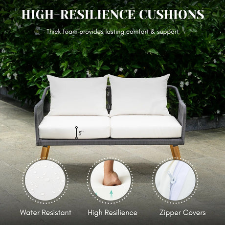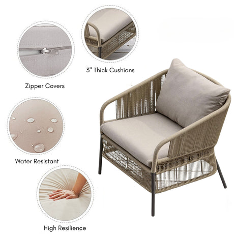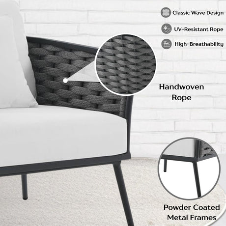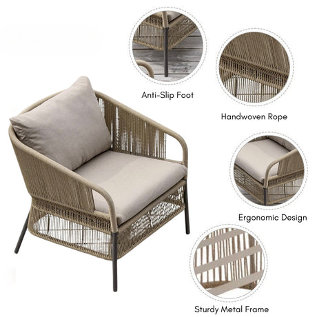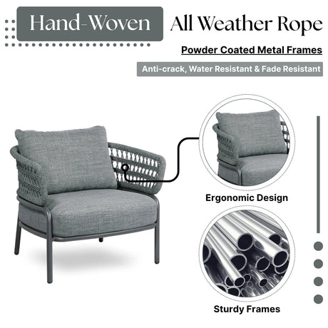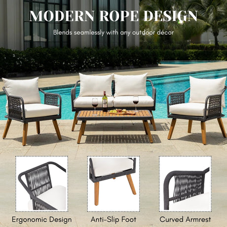 4-Piece Outdoor Rope Patio Furniture Set with W...