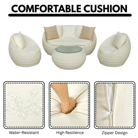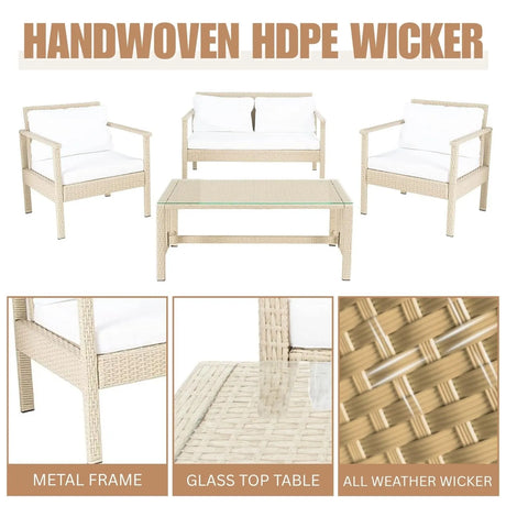 4-Piece Outdoor Braid & Rope Sofa Set (Beig...