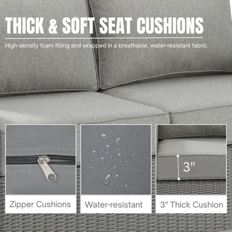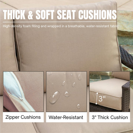 L-Shaped Patio Conversation Sofa Set with Thick...