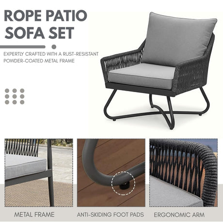 Outdoor Rope 4-Piece Patio Sofa Set with Wicker...