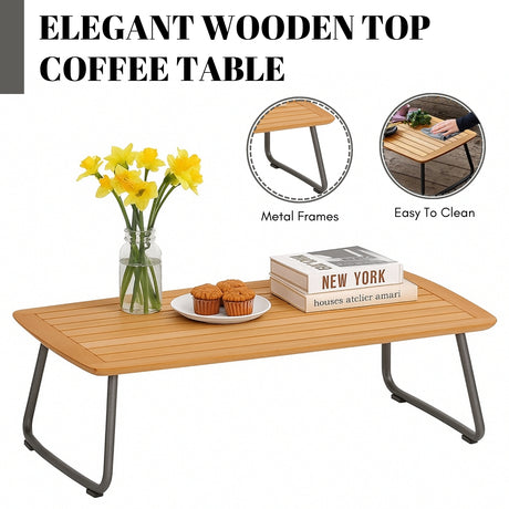 4 Piece Outdoor Rope Sofa Set with Wooden Top T...