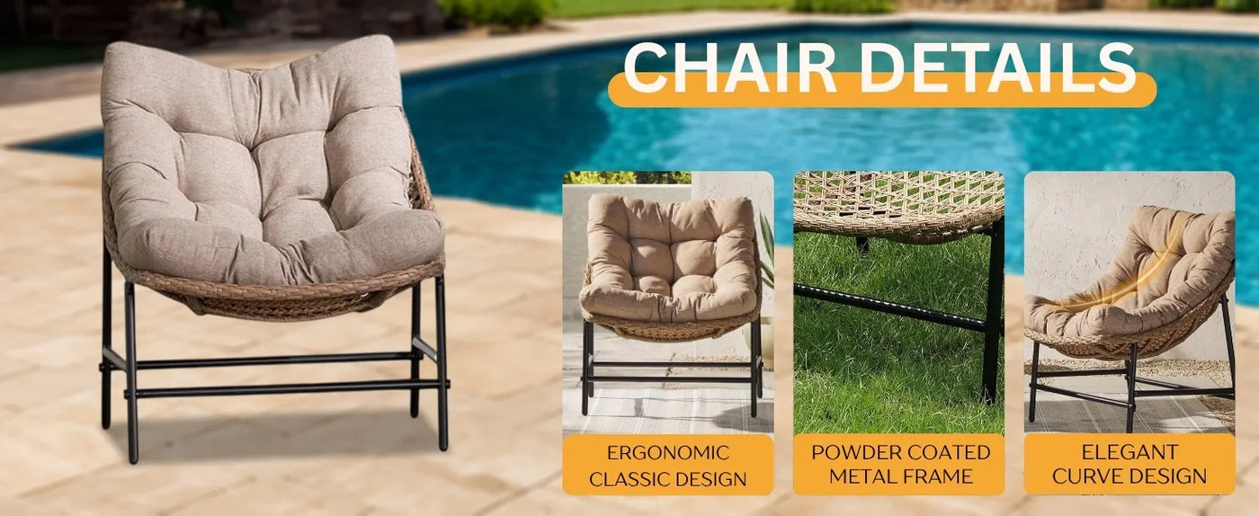 - All-Weather Rattan Construction : Handwoven HDPE rattan resists sun, rain, and moisture, ensuring long-lasting outdoor use.