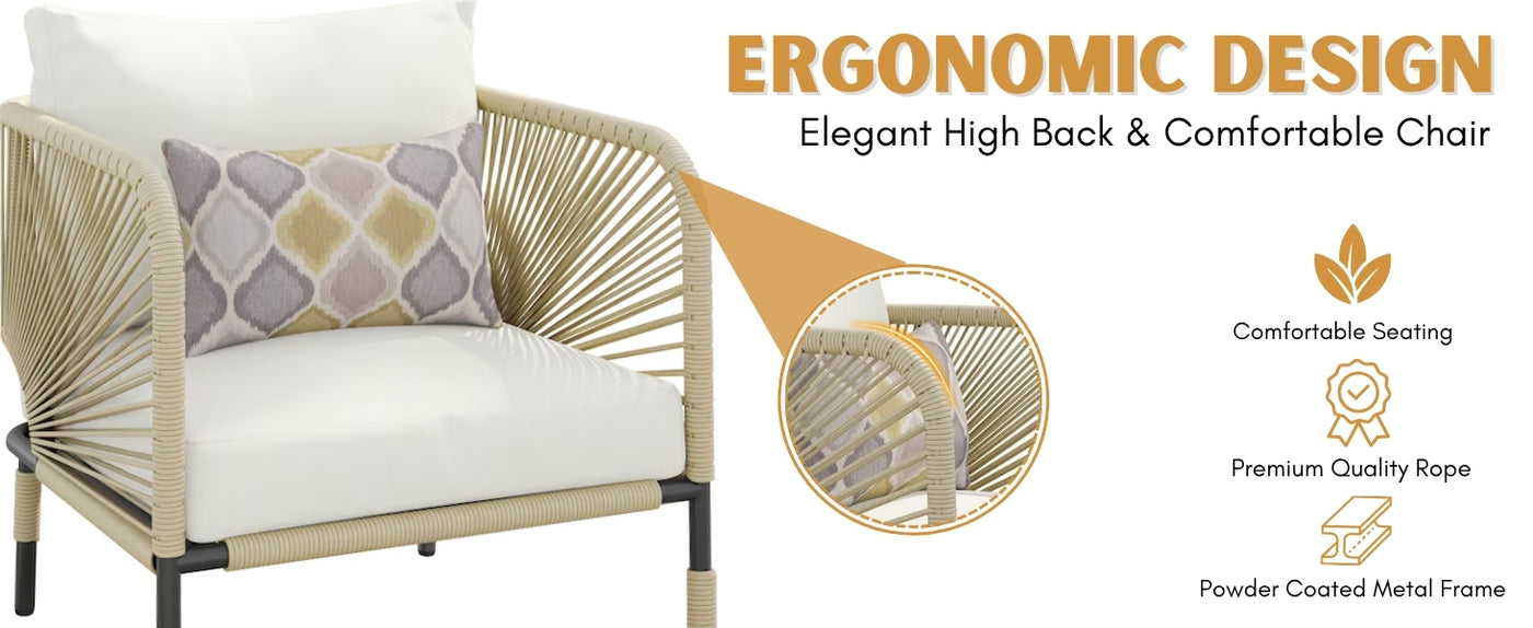 3 Piece Garden Outdoor Rope Patio Set is backordered and will ship as soon as it is back in stock.