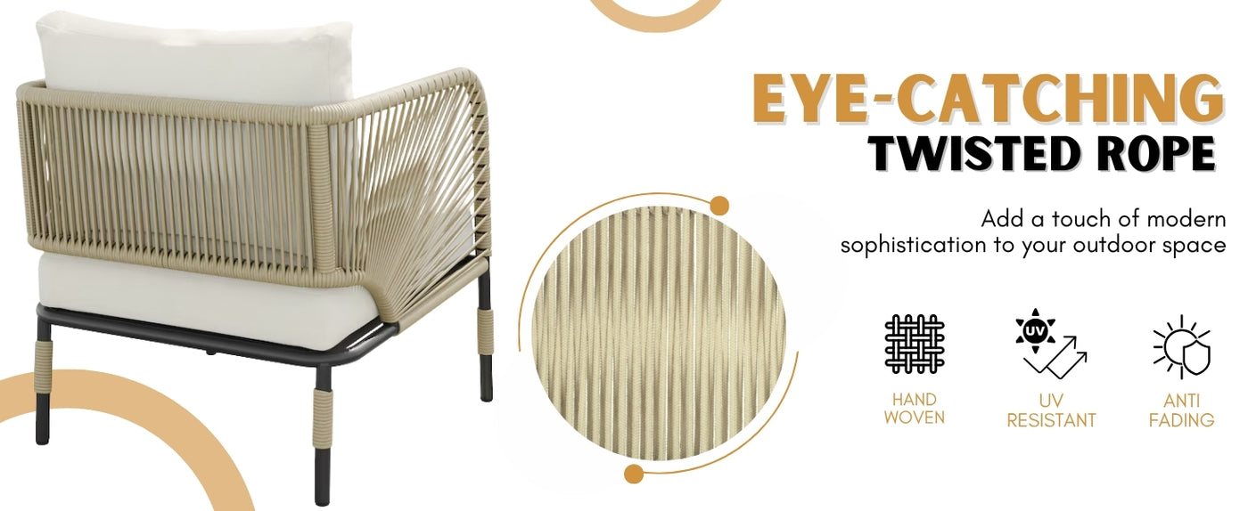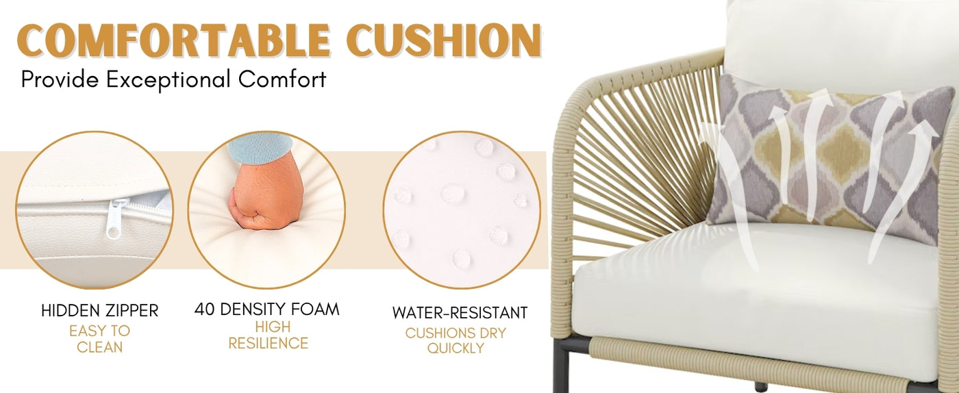 1. Rope Furniture - Clean with mild soap and water, avoid excess moisture, and cover when not in use to prevent wear from sun and rain.