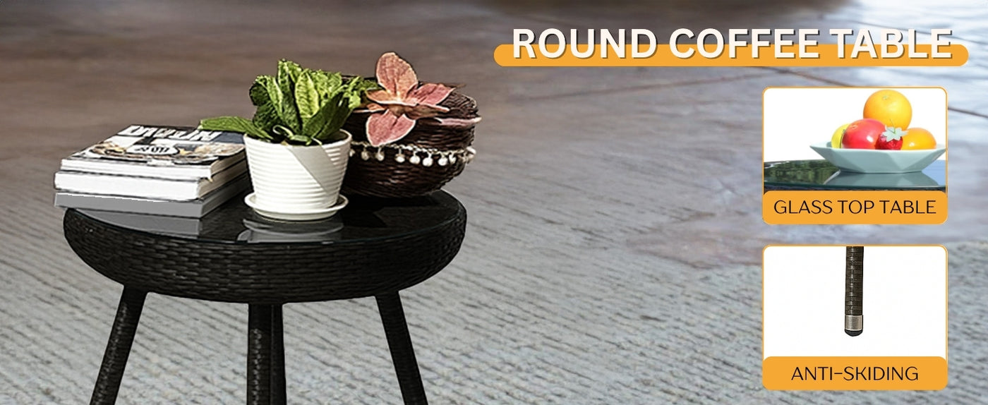 • Compact Coffee Table : Sturdy matching table with a glass top offers a practical and elegant surface for drinks and décor.