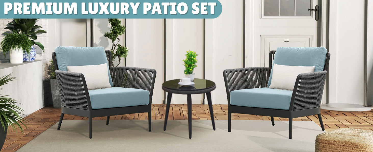 Outdoor 3 Piece All-Weather Rope Patio Set