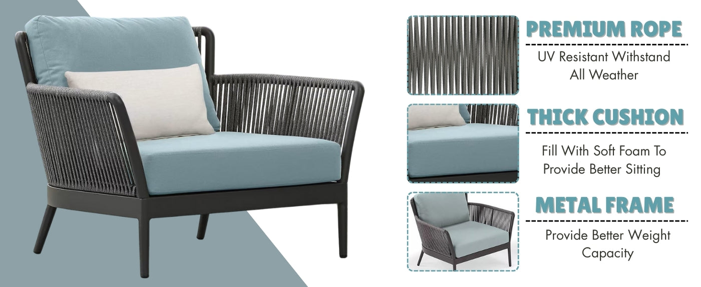 • Stylish Modern Design : Minimalist rope patterns and sleek silhouettes offer a chic, contemporary look that enhances any outdoor setting.