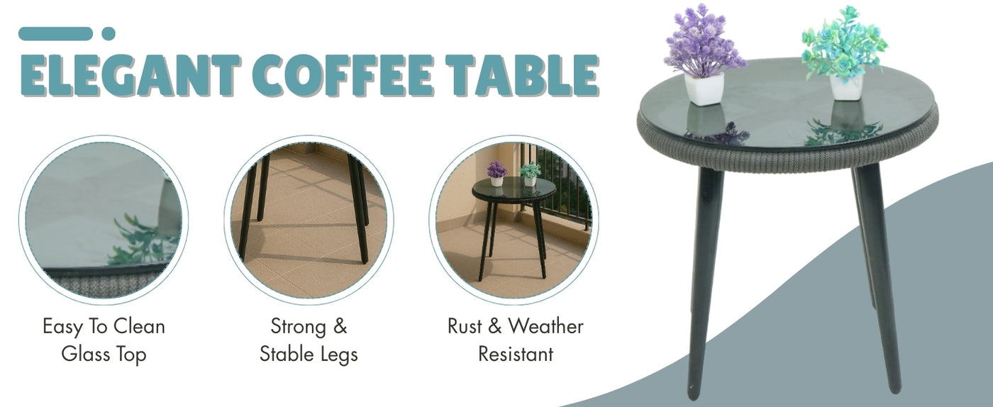 • Compact Table with Glass Top : Includes a space-saving side table with a tempered glass top—ideal for drinks, snacks, or décor, and easy to clean.
