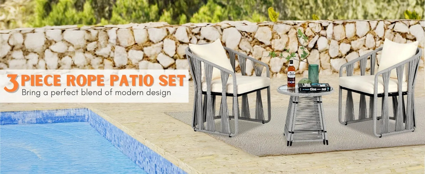 Outdoor Rope 3-Piece Patio Set is backordered and will ship as soon as it is back in stock.
