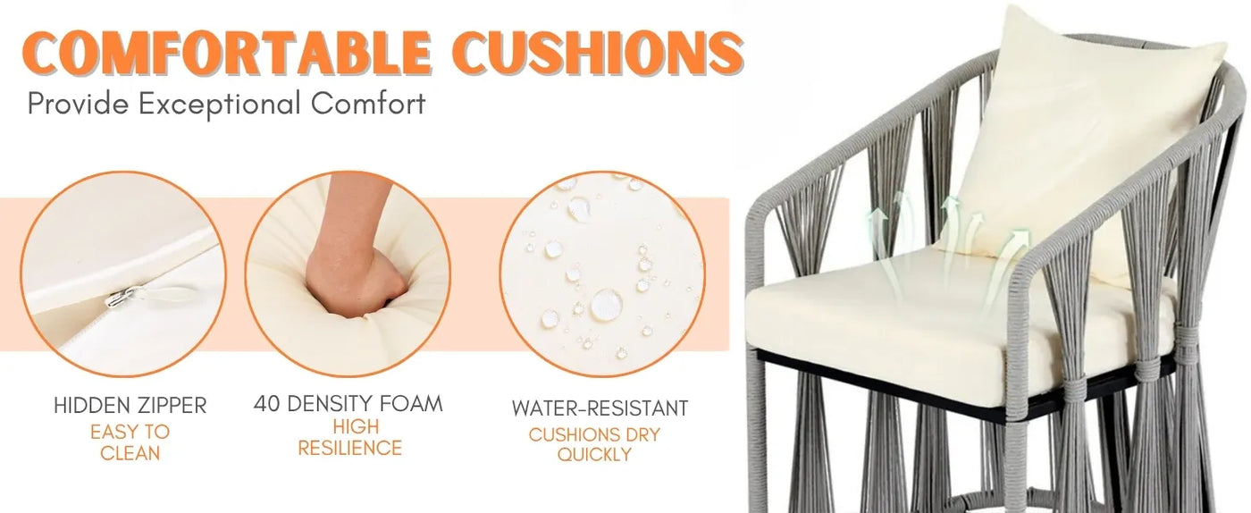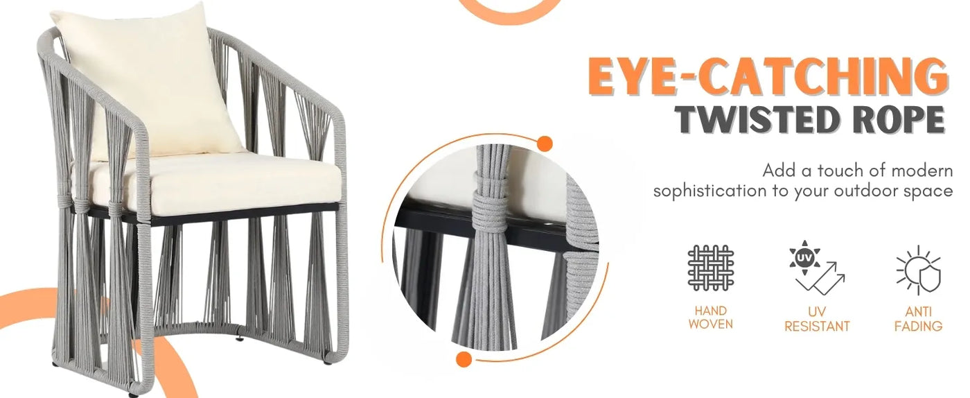 1. Rope Furniture - Clean with mild soap and water, avoid excess moisture, and cover when not in use to prevent wear from sun and rain.