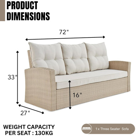 3-Seater Outdoor Rattan Wicker Patio Sofa