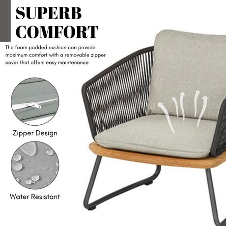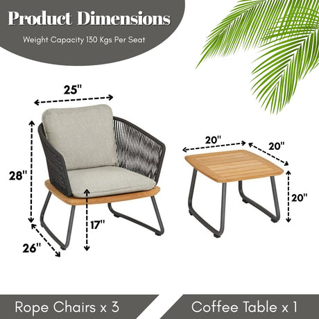 4 Piece Garden Outdoor Rope Patio Set With Wood...