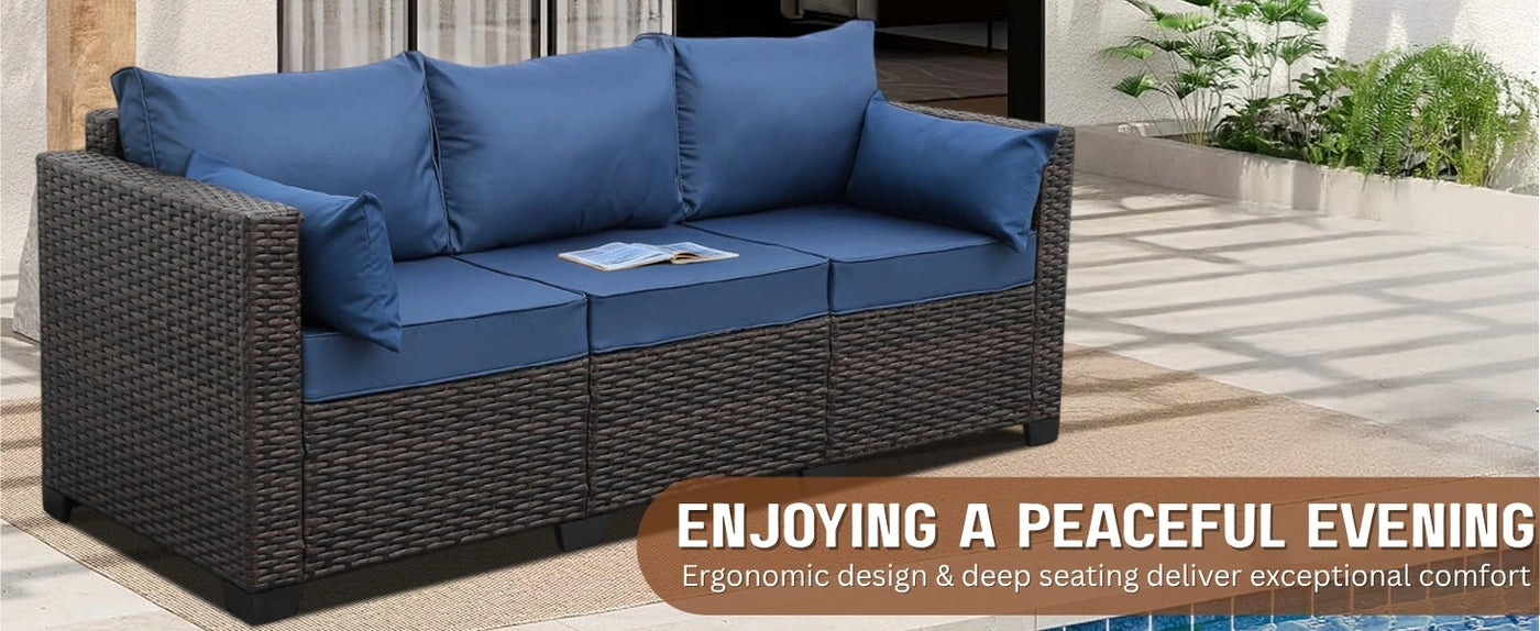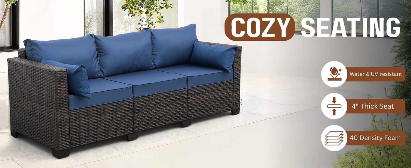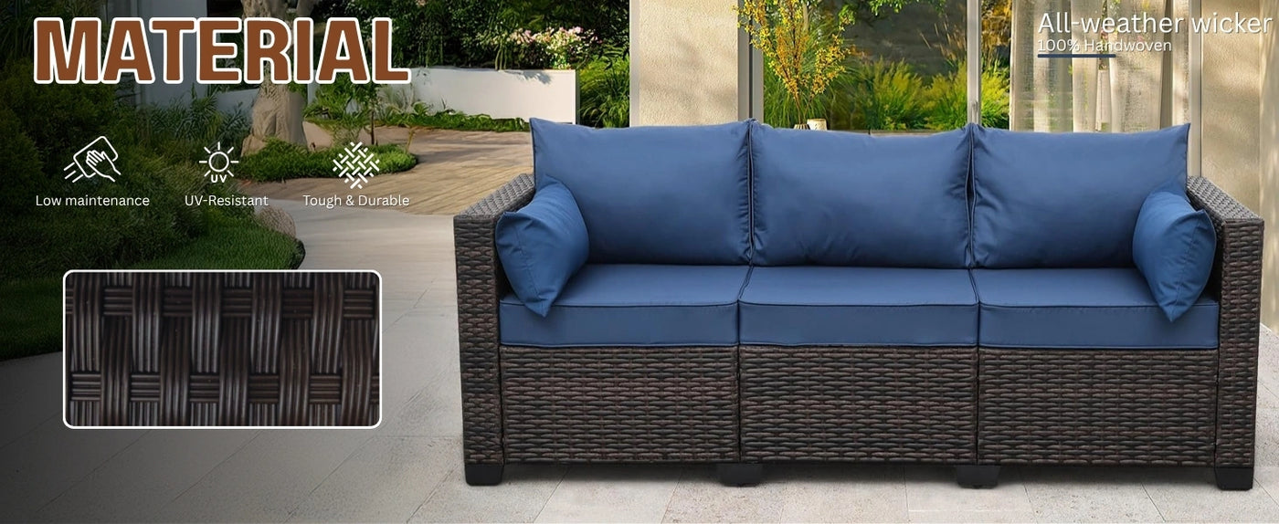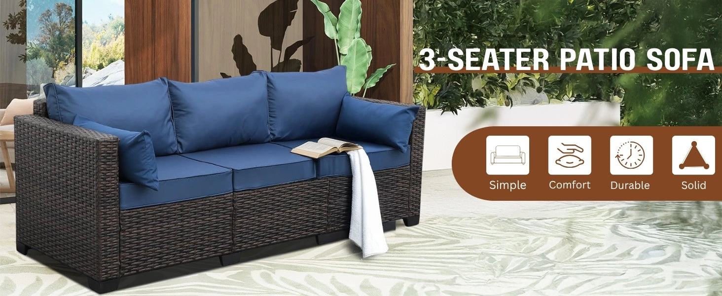 3-Seater Outdoor Rattan Wicker Patio Sofa