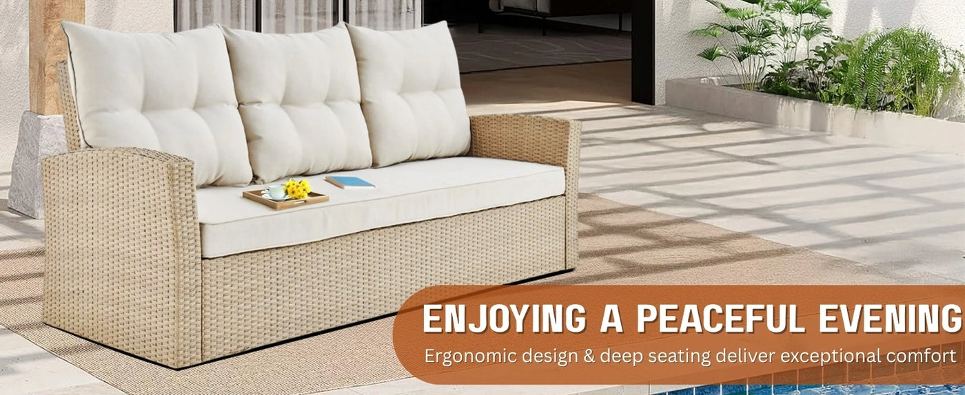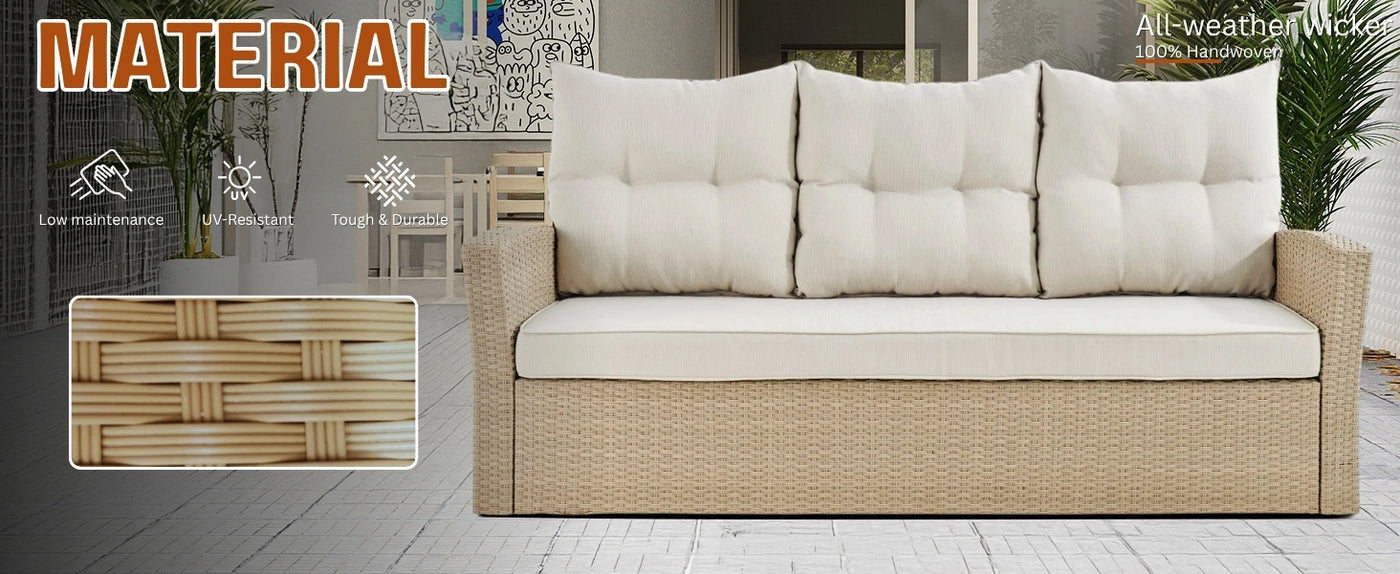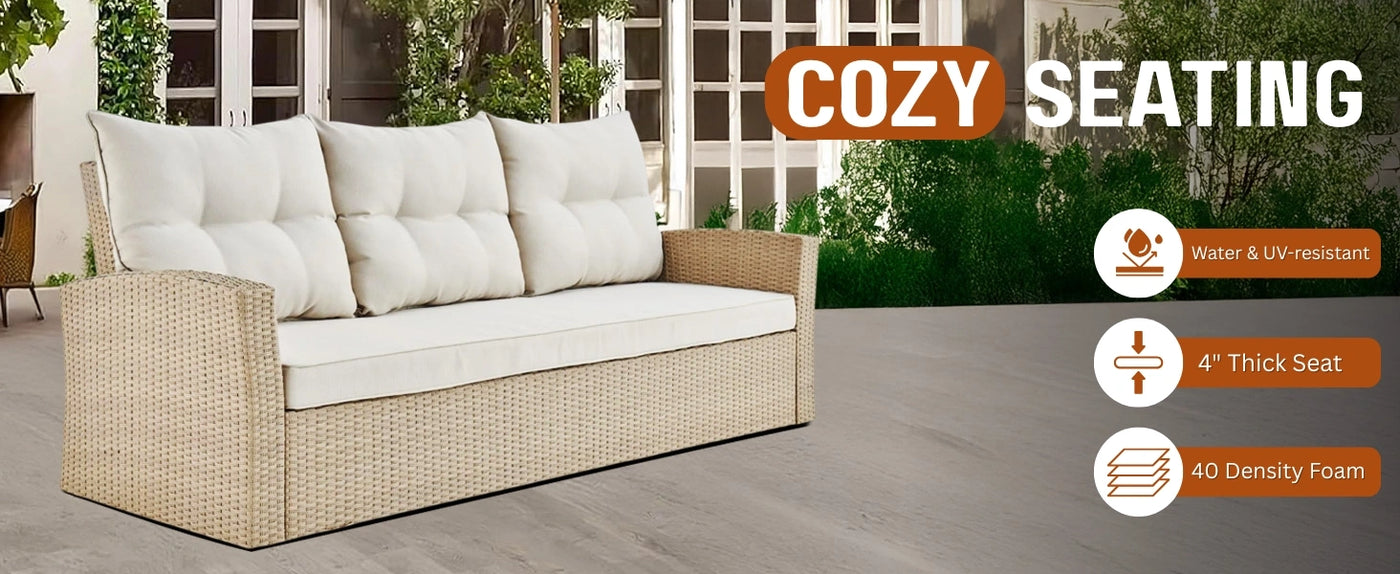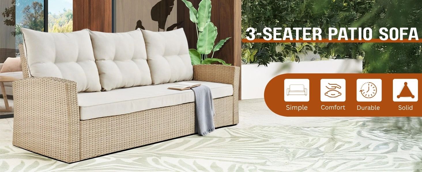 3-Seater Outdoor Rattan Wicker Patio Sofa
