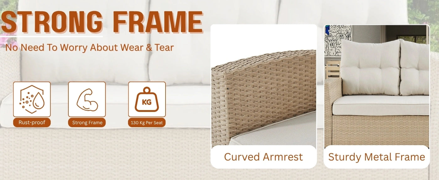 1. Rope Furniture - Clean with mild soap and water, avoid excess moisture, and cover when not in use to prevent wear from sun and rain.