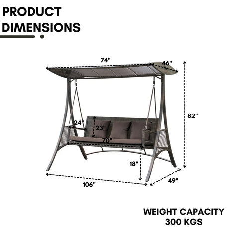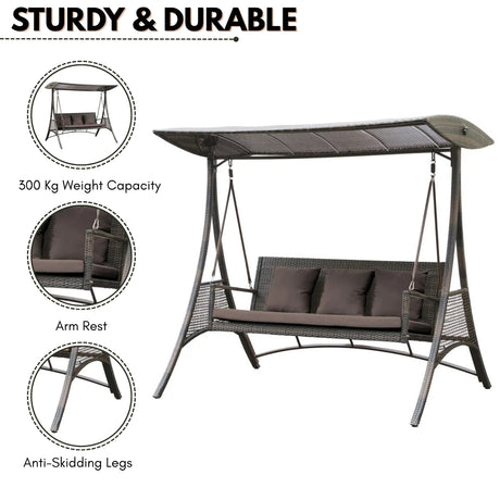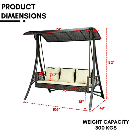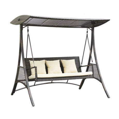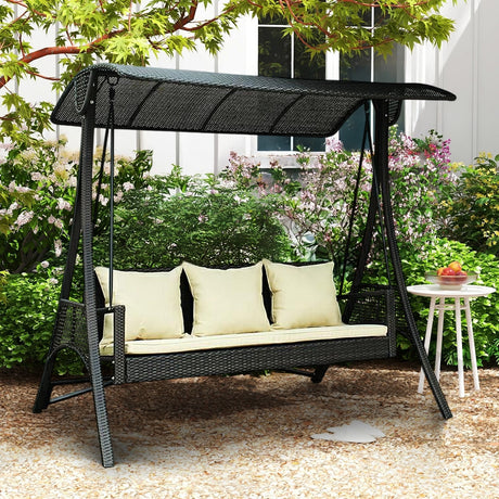 Outdoor Rattan Wicker 3-Seat Patio Swing Chair ...