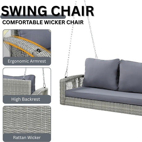 Outdoor Large HDPE Wicker 3-Person Porch Swing