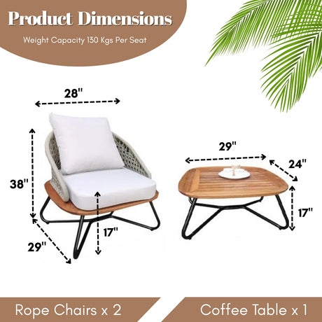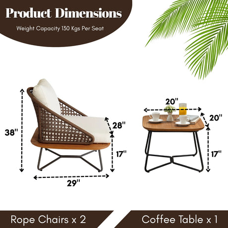 Outdoor Rope 3-Piece Patio Set With Wooden Top ...