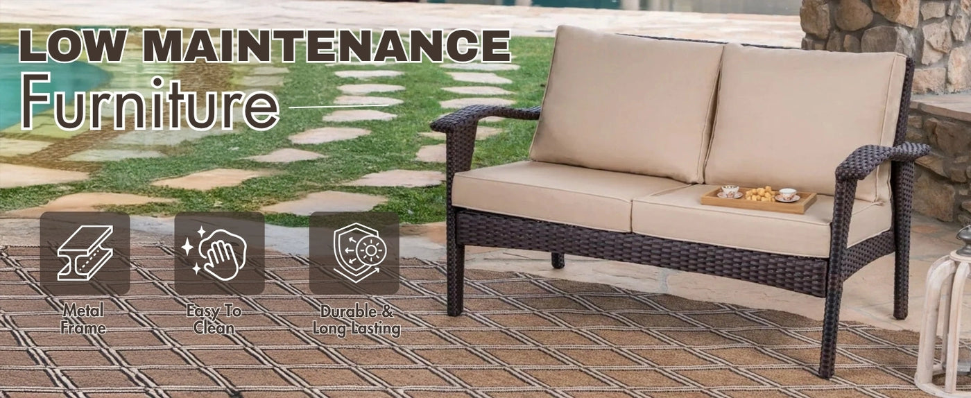 Outdoor Rattan Wicker 1-Piece Loveseat Sofa